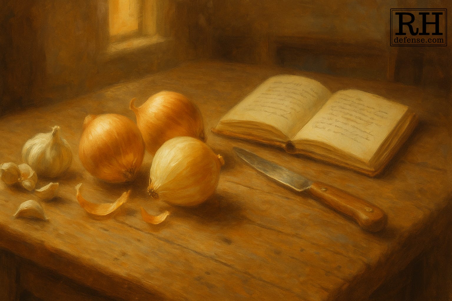 It would be nice if some garlic and onions could be worked into the last paragraphs of the story, too, in the denouement.
