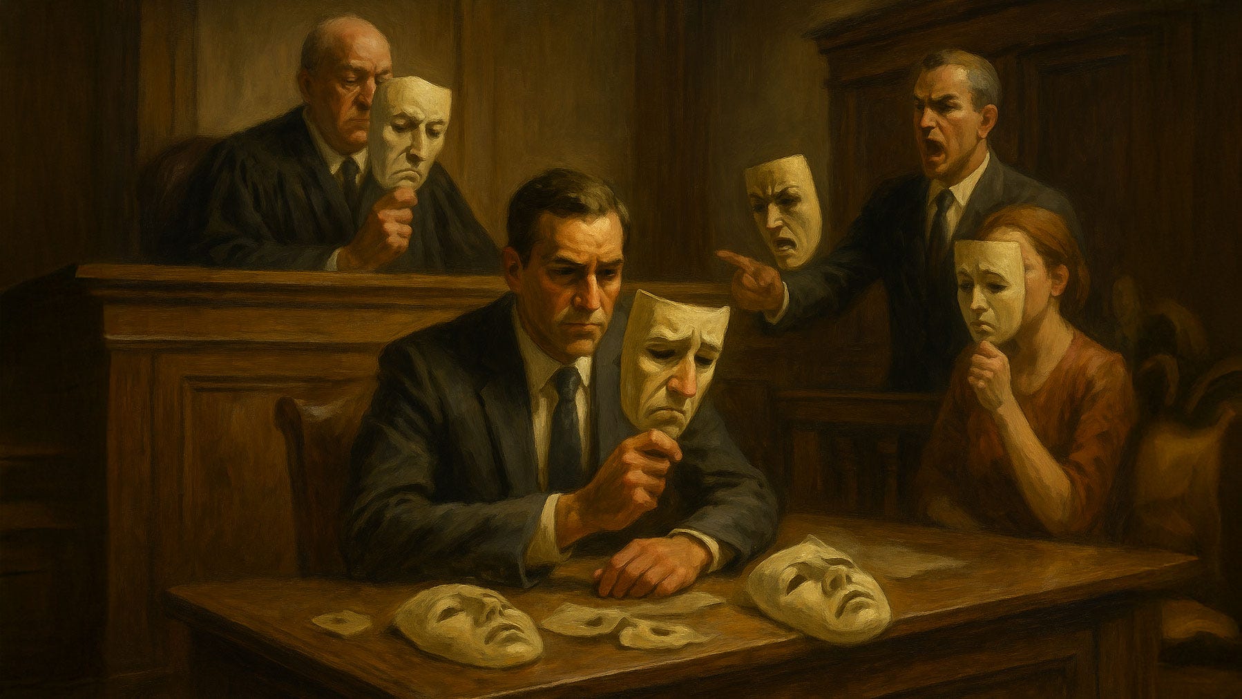 But in the courtroom, empathy itself can slip into performance. Jurors watch for signals, witnesses dramatize their wounds, judges posture impartiality. Even I am aware that part of my job is performing credibility. The danger is when the performance swallows the principle, leaving nothing genuine behind.