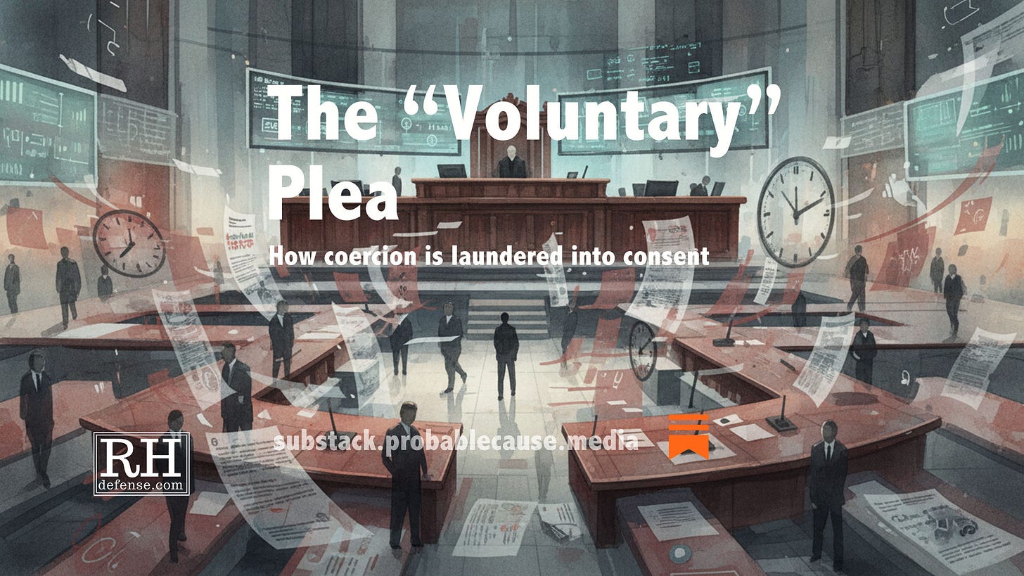 That is why plea forms must insist on the pretense of voluntariness. The system requires the denial. The fiction is not incidental; it is functional. It lets everyone pretend that the choices really exist where only coerced pleas do.
